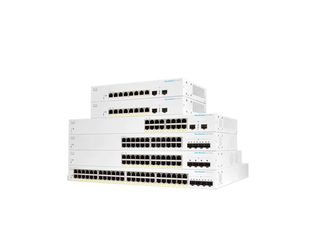 - CISCO Business Switching CBS220 Smart 24-port Gigabit Full PoE 382W 4x10G SFP+ uplink (ID: 218035)