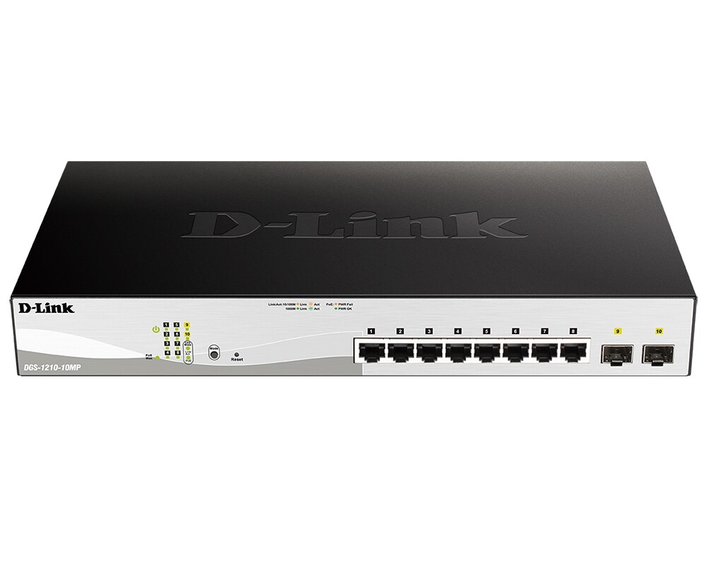 Switch (Комутатор) D-Link 10-Port Gigabit PoE+ Smart Switch inc. 2 SFP Ports POE budget 130W DGS-1210-10MP