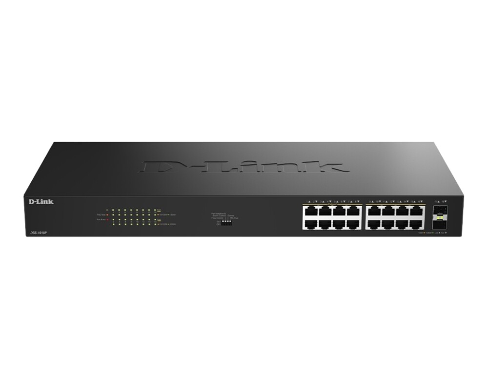 Switch (Комутатор) D-Link 16 Ports GE PoE(30W) + 2 Ports SFP Unmanaged Switch DGS-1018P