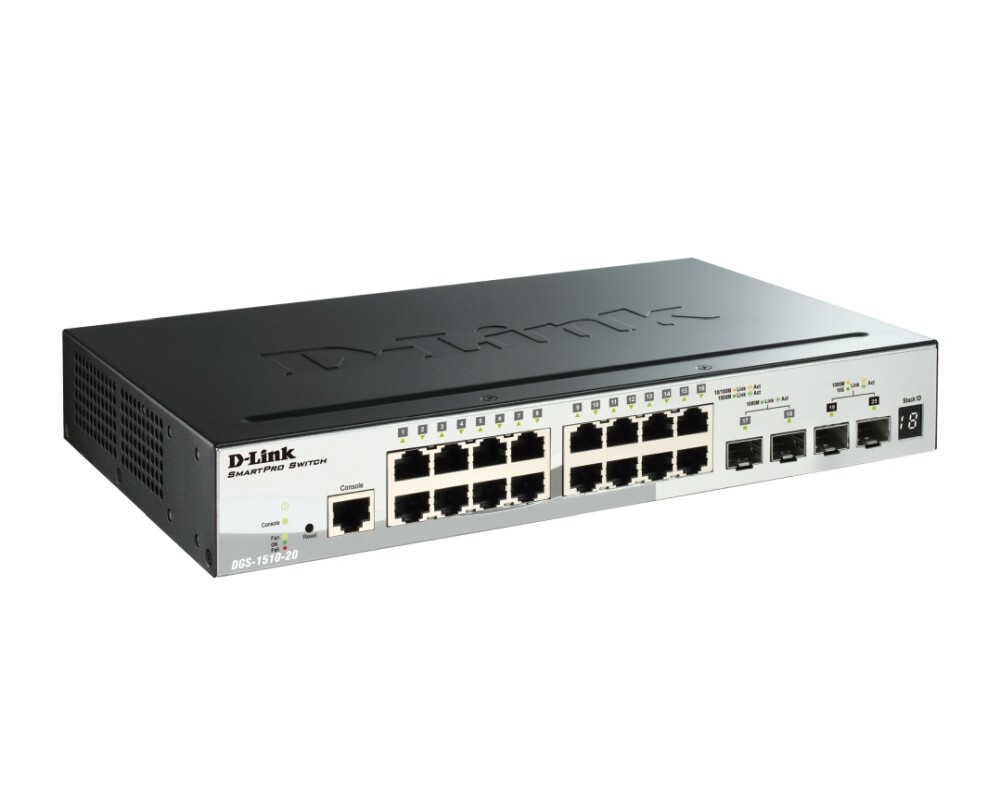 - D-Link 20-Port Gigabit Stackable SmartPro Switch including 2 SFP ports and 2 x 10G SFP+ ports (ID: 638415)
