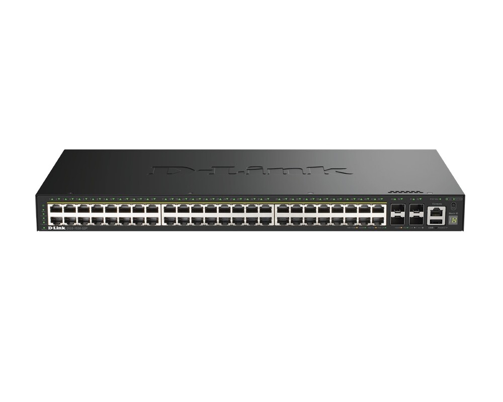 Switch (Комутатор) D-Link 48 Ports GE PoE (30W) + 4 Ports 10G SFP+ Smart Managed Switch DGS-1530-52P