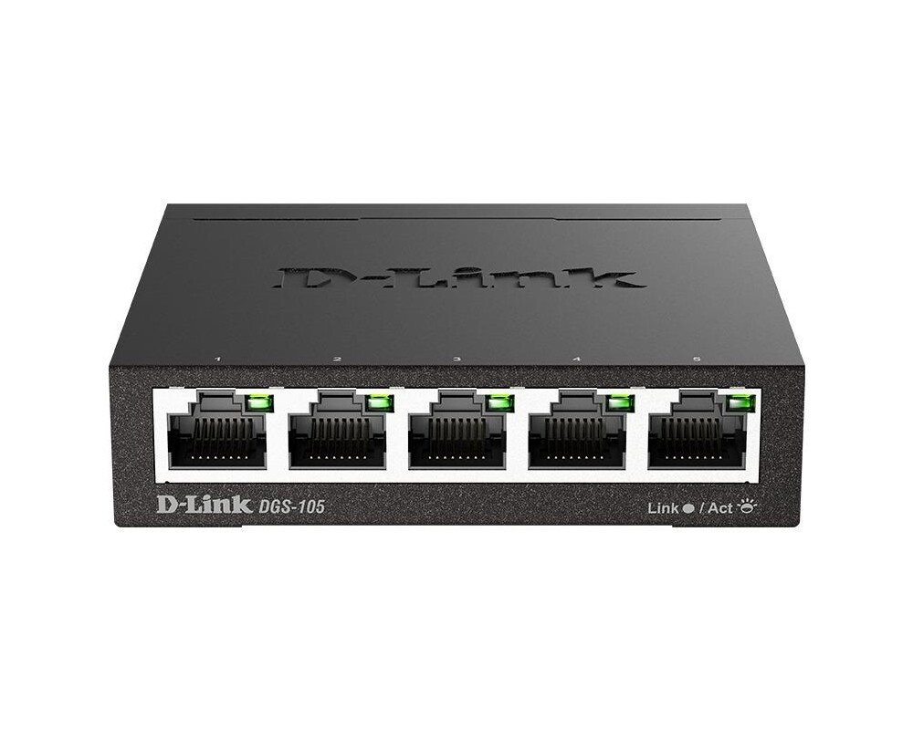 - Суич D-Link DGS-105/E, 5 портов, 10/100/1000, Gigabi, метален корпус (ID: 766490)