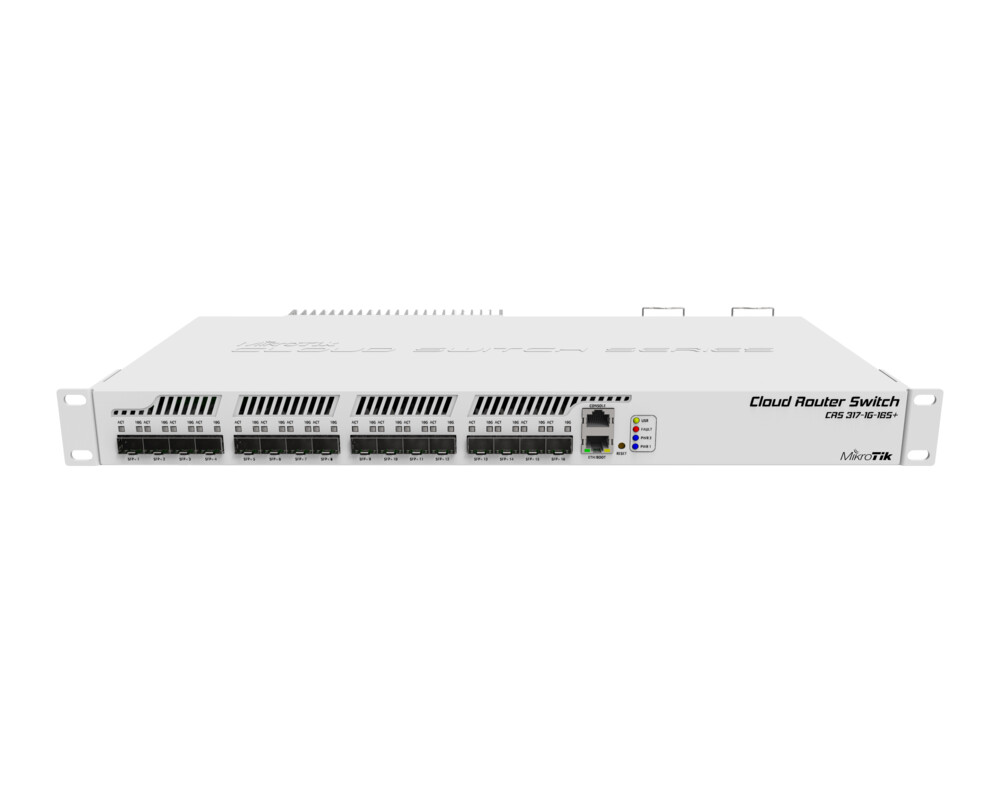 Облачният рутер-комутатор Mikrotik CRS317-1G-16S+RM с 16 SFP+ e rack mountable управляем комутатор с