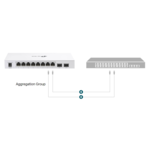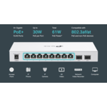 - 10 × гигабитови портове (8 × RJ45 PoE+, 2 × SFP)