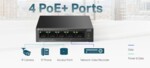5-портов гигабитов комутатор TP-Link LS105GP с 4-порта PoE+