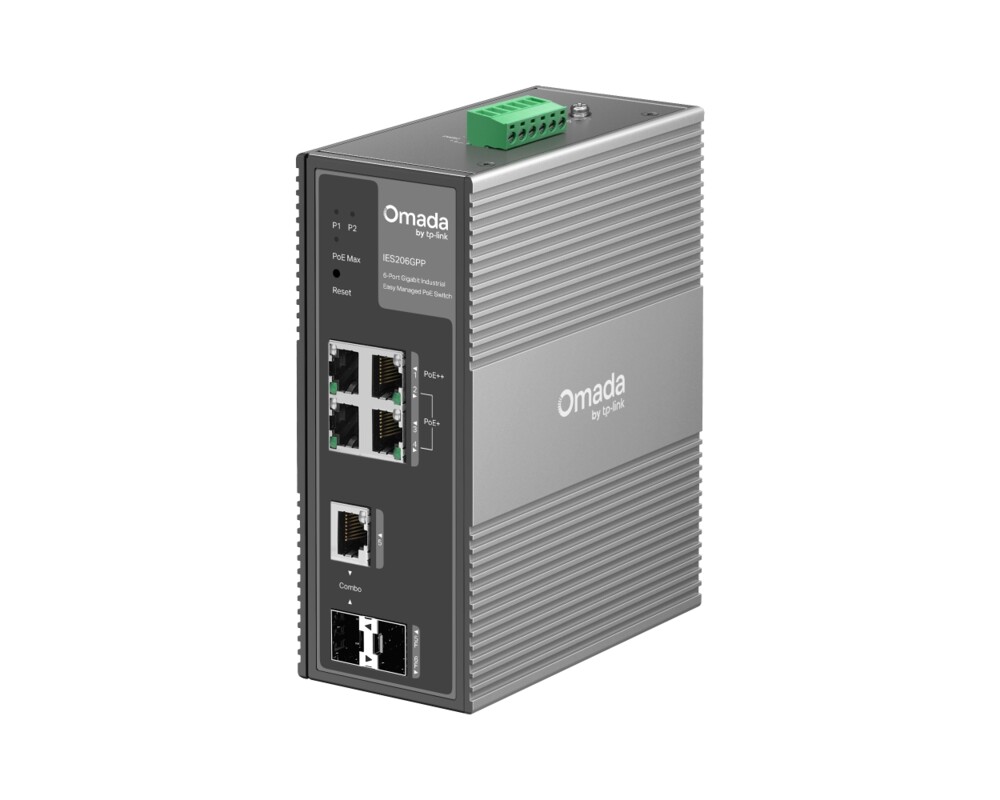 6-портов гигабитов индустриален лесно управляем комутатор TP-Link Omada IES206GPP с 3 PoE+ порта и 1 PoE++ порта