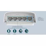 - 1-портов Gigabit PoE++ вход и 4-портов PoE+ изход : Поддържа до 64 W / 44 W / 19 W/ 6 W PoE бюджетен изход, когато се захранва от 802.3bt тип 4 (90 W), 802.3bt тип 3 (60 W), 802.3at и 802.3af PoE, съответно.