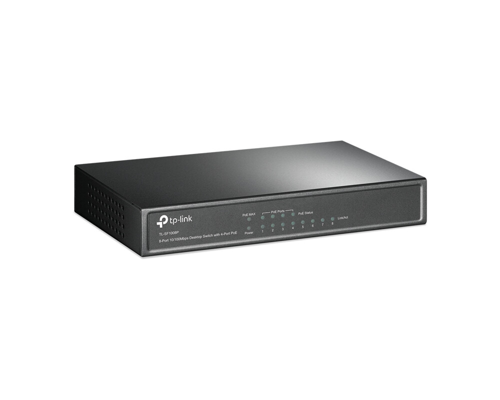 TL-SF1008P е с 8 10/100Mbps порта, не се нуждае от конфигуриране и осигурява 4 PoE (Power Ethernet) порта. Той може автоматично да открива и захранва всички IEEE 802.3af съвместими устройства (PDS). В тази ситуация, електрическата мощност се предава заедно с данните в един единствен кабел, което ви позволява да разширите мрежата си на места, където няма електропроводи или в търговски обекти, където искате да позиционирате устройства за точки на достъп, IP камери, IP телефони и т.н.