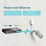 Съответствието със стандарта 802.3af/at PoE+ поддържа до 30 W на всеки PoE порт. Общият бюджет от 64 W PoE мощност* за 4× PoE портове отваря широка гама от приложения, като наблюдение на офиси, общежития и малки предприятия. Той е напълно съвместим с IP камери, точки за достъп, IP телефони, компютри, принтери и др.