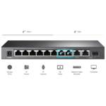 | Видове портове | 8x PoE+ 10/100/1000Mbps RJ45 Ports, 1 Gigabit SFP Slot, 1x 10/100/1000 Ethernet port |