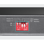 - Priority Mode гарантира качеството на чувствителни приложения като видео наблюдение в критични бизнес зони, като дава приоритет на данните на портове 1-2