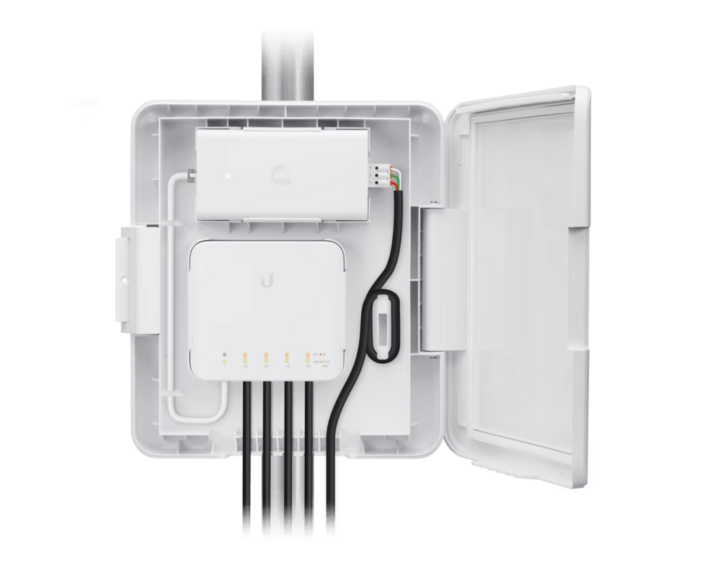 Външен, устойчив на атмосферни влияния корпус, USW Flex Utility се предлага като аксесоар към UniFi® Switch Flex. Включва Ethernet пач кабел и 60W PoE адаптер, който осигурява максимален PoE бюджет от 46W. USW Flex Utility се монтира лесно на стълб и е с подсигурена програма за чисто управление на кабелите, предоставяйки допълнителна сигурност. Подходящ за монтаж на стена, пилон, на отктито и закрито.