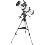 Bresser 130/650 EQ3 Telescope features a main mirror aperture of 130mm and a focal length of 650mm. The telescope is excellent for beginners and advanced users who enjoy observing the night sky with all its amazing celestial objects. The telescope comes with a complete kit - mount, tripod, optical tube assembly and accessories. The telescope’s low focal length makes it perfectly suited for wide field observing, yet with its accessories it is excellent for the moon or planetary observing in detail. The stable equatorial mount makes the mirror telescope very easy to use. You only need to set the R.A. axis to the North Pole. You can also guide the Bresser 130/650 EQ3 Telescope on its object with only one hand.