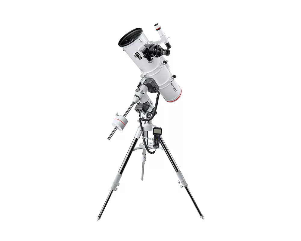 The Bresser Messier N-150 telescope excels with high rigidity and tack-sharp parabolic optics. The 150mm aperture enables you to observe bright nebulas in the depth of space. Find the remnants of a gigantic stellar explosion from the year 1054 in the Taurus constellation, or scan the glowing bands of the great Orion Nebula. Detect the famous Whirlpool Galaxy in the Big Dipper or find the Dumpbell-Nebula in the constellation Vulpecula (little fox). The high rigidity of the EXOS-2 mount allows for relaxed observations and is helpful for those making their first attempts at astrophotography.
