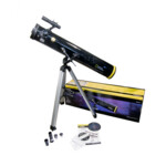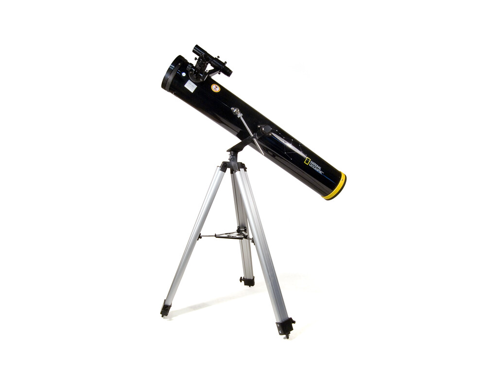 Fully equipped, and with an azimuth mount that is easy to use, the Bresser National Geographic 114/900 AZ Telescope is ideal for a beginner. This classic Newtonian reflector with a large primary mirror shows not only the big planets, but also bright deep-sky objects. A powerful 6x30 optical finder with a wide field of view allows you to quickly find the desired objects on the starry sky. The range of magnification in basic configuration is 36–67x. The mirror has a special protective coating that prolongs its service life and prevents darkening. A robust, stable aluminum tripod with adjustable height provides proper stability of the entire structure.
