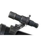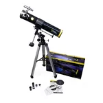 The Bresser National Geographic 76/700 EQ is a compact and lightweight Newtonian reflector with a 76mm aperture and 28–233x magnification. This model is perfect for children and novice astronomers. The tube is mounted on the equatorial mount, which is more advanced than the azimuthal one, and more efficient. The same mount is used in more expensive Bresser models. In addition, the telescope comes with a tripod, three eyepieces, and a Barlow lens. So, for little money you get stunning views of the Solar system and a large number of deep-sky bright objects.
