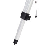 Алуминиевият триножник с регулируема височина има поставка за принадлежности.