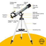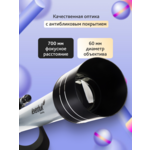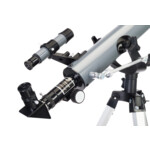 Този ахроматичен рефракторен телескоп осигурява ясно изображение с добро качество благодарение на неговата изработена от стъкло оптика с антирефлексно покритие. Благодарение на голямата апертура (60 mm) той предлага възможност за наблюдение на Луната и наземни пейзажи. Можете също да наблюдавате ярки обекти в далечния Космос и някои планети от слънчевата система, но няма да се виждат подробности.