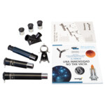 | Окуляри | 4 mm (175x), 12,5 mm (56x), 20 mm (35x), Окуляр за пряко наблюдение 1,5x |