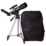 Ще можете да започнете наблюдения веднага щом извадите от кутията този телескоп: всичко необходимо вече е включено в комплекта. Този оптичен инструмент не изисква настройка. Този телескоп е удобен, ако искате да го вземете със себе си при пътуване или в провинцията, благодарение на малкото му тегло и удобната раница в комплекта. Раницата е достатъчно голяма, за да помести тръбата на телескопа, монтировката, триножника и принадлежностите.