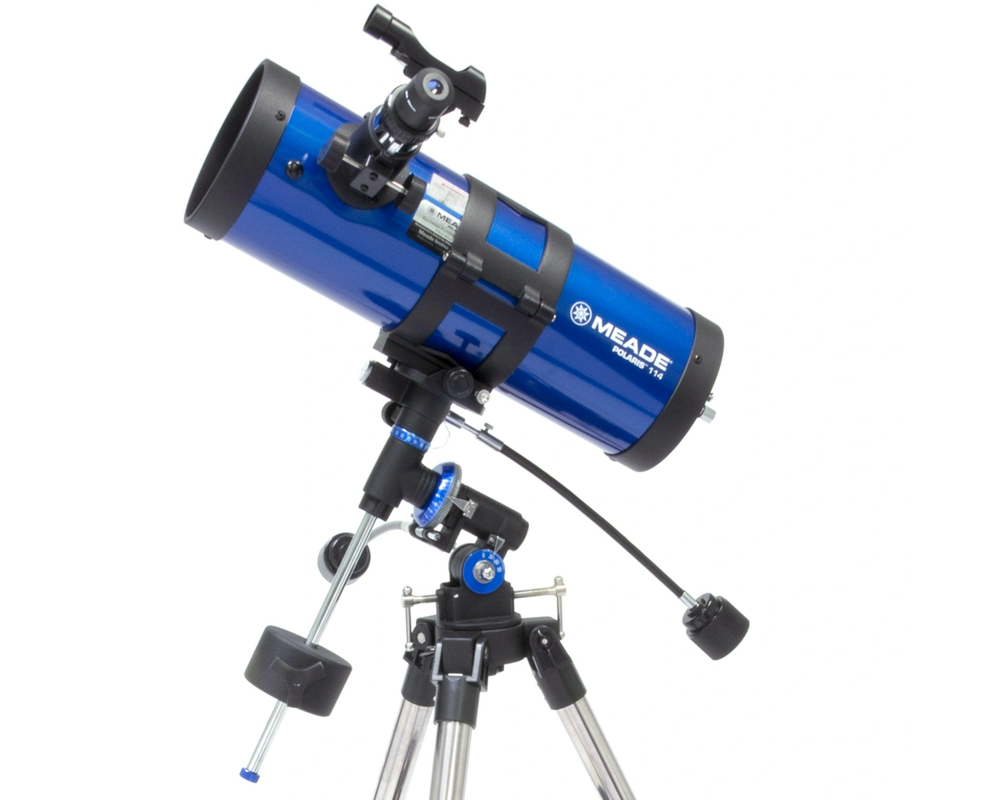 Рефлекторният телескоп Meade Polaris 114 mm EQ е качествен инструмент за наблюдение на обекти в Слънчевата система и далечния Космос. Това е рефлекторен телескоп, който създава винаги ярки изображения без хроматични аберации. Телескопът е идеален за наблюдения сред природата.