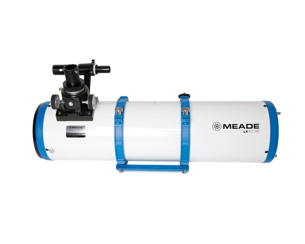 <p>Нютоновият рефлекторен телескоп Meade LX70 R6 6" е оборудван с висококачествено параболично главно огледало f/5. Тази бърза оптична система f/5 предоставя невероятни изображения с широко поле за опитния астрофотограф или наблюдател на далечния Космос. Неговата 6" апертура позволява разкриването на детайли със сечение до 0,76 ъглови секунди, който могат да се видят с помощта на включените в комплекта два окуляра Plössl 1,25" (9 mm и 26 mm). Оптичният визьор 6x30 с решетка с кръстче прави откриването на бледи обекти бързо и лесно. 2" фокусиращо устройство тип Крейфорд осигурява плавно движение при регулиране на фокуса.</p>