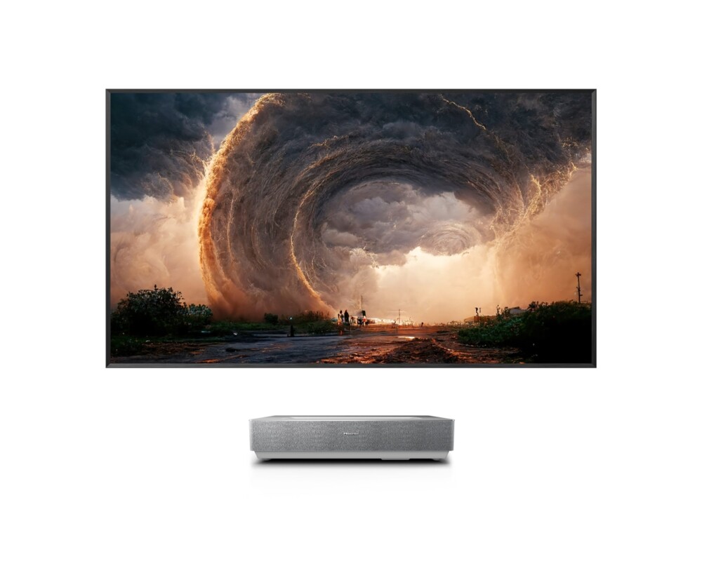 Лазерният телевизор Hisense 100L5HD с ултра къс фокус ви показва цветни и ярки 4K изображения. Самият му екран не допуска досадни отблясъци и ви гарантира перфектна видимост, дори в най-светлите помещения в дома ви. Картината е ярка и детайлна при всякакъв вид осветление, което ви позволява да се насладите на най-доброто визуално изживяване, независимо в коя стая сте. 4K Ultra HD резолюцията носи над 8 милиона пиксела, за да създаде изцяло нов свят на много голям ALF екран. Изображенията са по-отчетливи, по-ярки и показани в истинските им цветове точно както режисьорът е предвидил да ги видите. Високият динамичен обхват (HDR) отваря изцяло нова гама от цветове и контраст, така че да можете да се насладите на невероятно жизнена картина с невероятна дълбочина и богати детайли. Определено ще се насладите на подобрения цветови спектър на Hisense Laser TV, който показва реалистични изображения с прецизността на своя лазерен светлинен източник, надхвърляйки стандартния Rec.709 UHD 4K цветови диапазон. Чрез технологията MEMC с време за реакция на процесора на ниво микросекунда може да се достави скорост на движение 10 пъти по-бърза от OLED. Бързо движещите се изображения са плавни и ясни, което прави Hisense Laser TV идеален за гледане на спорт, бързи екшън филми и играене на игри. Вградените високоговорители осигуряват 30 W превъзходно аудио изживяване, а наградената аудио технология dbx-tv® осигурява богат, детайлен звук.