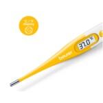 Този електронен термометър ви помага да измерите температурата на вашето дете бързо и лесно. Той има следните характеристики и функции: бързо измерване за прибл. 10 секунди; гъвкав връх за измерване; без стъкло и живак; точност на измерване: +/- 0.1°C; звуков сигнал, когато измерването приключи; звуково предупреждение, когато измерената температура надвиши 37.8°C (аларма за висока температура); голям дисплей за лесно разчитане на резултатите; водоустойчив (от върха за измерване до дисплея); може да се дезинфекцира; индикатор за статус на батерия; с кутия за съхранение; автоматично изключване.