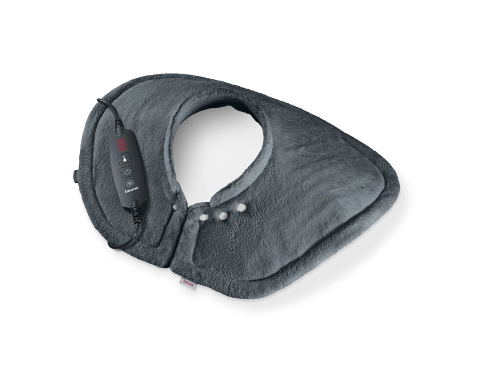 - Beurer HK 66 Cosy Grey Shoulder & Neck Heat Pad; 3 temperature settings; auto switch-off after 90 min; washable on 30°; removable switch; fleece fibre;56(L)x52(W) cm (ID: 865267)
