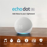 Тонколони Amazon Echo Dot 5, B09B8vn8yq, Гласов асистент, Alexa, Часовник, Бяла ECHO-DOT5-GLWH-CL