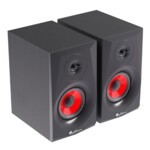 | Характеристики | Speakers: Satelite 2x 10W Total output power: 40W RMS Frequency response: 40 -20000Hz Input: Stereo RCA Type of power supply: 220-240W Color: Black-Red The combination of the matt front and the red colour of the membranes makes the speakers look great on each gamer’s desk. The side of the device includes a side panel containing metal knobs. |