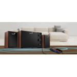 | ДОПЪЛНИТЕЛНИ | Total Output Power: 15 watts (RMS), Subwoofer: 8 watts, Satellite speaker: 3.5 watts per channel Separation of treble and bass, 4" woofer for deep bass, 2" tweeter for mid high sound Treble, Bass, and Volume adjustable Auxiliary Line in jack for external phone, pad, or DVD, mp3 player |
