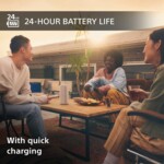 Високоговорителят XE300 осигурява еднакво звуково изживяване за всички на партито, само от един издържлив и преносим високоговорител с дълъг живот на батерията. Високоговорителят XE300 разпространява звука така, че всеки на партито да го усеща еднакво. XE300 има дифузьор с линейна форма, която ще помогне на звука да достигне по-далеч от всякога. Освен това, с компактния си размер и 24-те часа живот на батерията този високоговорител е перфектният помощник за следващото ви парти. Вдъхновен от аудиосистемите, използвани за професионални концерти, уникалният дифузьор с линейна форма на Sony създава линеен източник на звук и го разпределя по-равномерно в по-широка зона, за да изпълни мястото на събитието с качествено аудио. Така то се разпространява на по-голяма площ без компромис към качеството. За разлика от кръглата диафрагма в стандартната колона, диафрагмата на наскоро разработената X-Balanced Speaker Unit в XE300 не е кръгла, което освобождава повече напрежение за по-висококачествен звук. Двойните пасивни говорители възпроизвеждат мощен бас. XE300 е водоустойчив и дори устойчив на солена вода, така че няма за какво да се притеснявате край морето или басейна, дори може и да го миете. XE300 ще осигури 24 часа възпроизвеждане при пълен заряд на батерията, което означава, че едно зареждане трябва да е достатъчно, за да издържи на всяко парти. А уникалната сензорна технология за микрофон на Sony - Ambient Noise Sensing, пести батерията навън. Насладете се на по-качествени обаждания с Echo Cancelling - По-добри срещи и обаждания с Echo Cancelling. Това позволява двама души да говорят едновременно без да се заглушават. И можете да изключите звука си с удобния бутон MIC Mute на високоговорителя. А с Multipoint Connection, две устройства могат да се сдвоят едновременно. Раздвижете купона с Party Connect и Stereo Pair - Свържете до 100 съвместими безжични високоговорителя8 с BLUETOOTH технология с Party Connect и синхронизирайте музиката, за да танцуват всички в един ритъм9. Или свържете безжично два високоговорителя със Stereo Pair за невероятен стерео звук. И двете функции се активират от Sony Music Center.