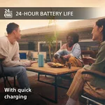 Високоговорителят XE300 осигурява еднакво звуково изживяване за всички на партито, само от един издържлив и преносим високоговорител с дълъг живот на батерията. Високоговорителят XE300 разпространява звука така, че всеки на партито да го усеща еднакво. XE300 има дифузьор с линейна форма, която ще помогне на звука да достигне по-далеч от всякога. Освен това, с компактния си размер и 24-те часа живот на батерията този високоговорител е перфектният помощник за следващото ви парти. Вдъхновен от аудиосистемите, използвани за професионални концерти, уникалният дифузьор с линейна форма на Sony създава линеен източник на звук и го разпределя по-равномерно в по-широка зона, за да изпълни мястото на събитието с качествено аудио. Така то се разпространява на по-голяма площ без компромис към качеството. За разлика от кръглата диафрагма в стандартната колона, диафрагмата на наскоро разработената X-Balanced Speaker Unit в XE300 не е кръгла, което освобождава повече напрежение за по-висококачествен звук. Двойните пасивни говорители възпроизвеждат мощен бас. XE300 е водоустойчив и дори устойчив на солена вода, така че няма за какво да се притеснявате край морето или басейна, дори може и да го миете. XE300 ще осигури 24 часа възпроизвеждане при пълен заряд на батерията, което означава, че едно зареждане трябва да е достатъчно, за да издържи на всяко парти. А уникалната сензорна технология за микрофон на Sony - Ambient Noise Sensing, пести батерията навън. Насладете се на по-качествени обаждания с Echo Cancelling - По-добри срещи и обаждания с Echo Cancelling. Това позволява двама души да говорят едновременно без да се заглушават. И можете да изключите звука си с удобния бутон MIC Mute на високоговорителя. А с Multipoint Connection, две устройства могат да се сдвоят едновременно. Раздвижете купона с Party Connect и Stereo Pair - Свържете до 100 съвместими безжични високоговорителя8 с BLUETOOTH технология с Party Connect и синхронизирайте музиката, за да танцуват всички в един ритъм9. Или свържете безжично два високоговорителя със Stereo Pair за невероятен стерео звук. И двете функции се активират от Sony Music Center.