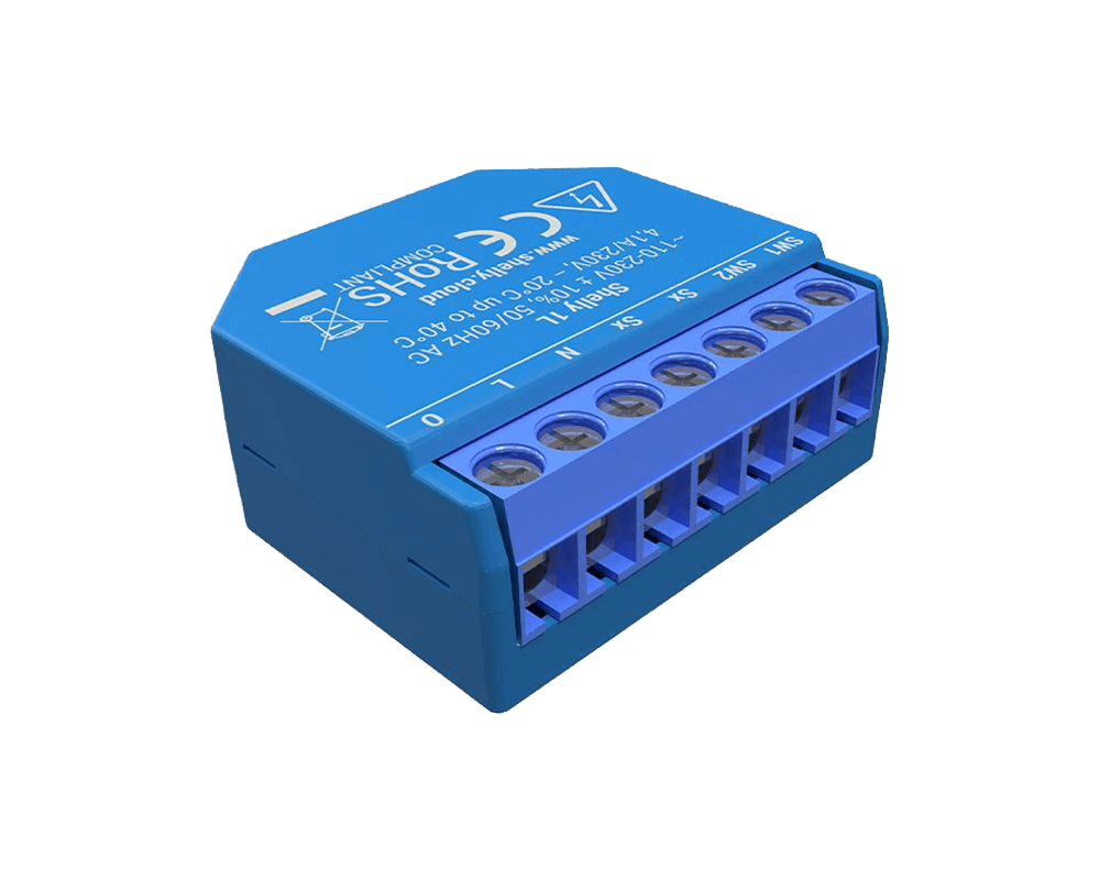 Единично WiFi реле Shelly 1L, Чрез него може да управлявате електрическа верига до 1kW. Релето може да работи без нулев проводник, което го прави идеално за превключватели на осветление. Устройството е съвместимо с Android, iOS, Amazon Alexa, Google Assistant, сървъри за домашна автоматизация и не се нуждае от хъб, за да работи. Релето е проектирано да пасва в повечето стандартни електрически кутии и може да се интегрира към всички останали продукти на Shelly.