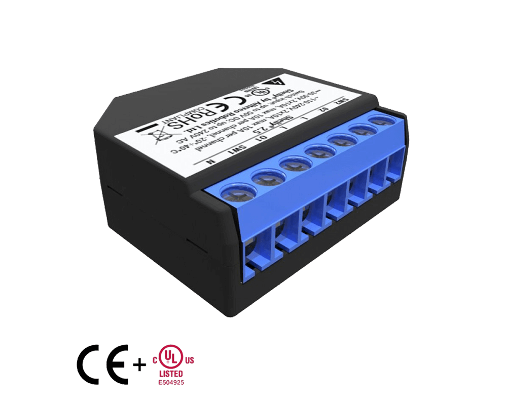 Двойното Wi-Fi реле Shelly 2.5 може да управлява две електрически вериги с максимален товар до 2.3KW/10A всяка. Осигурява ви независимо измерване на консумацията за всеки канал, което ви позволява да наблюдавате както моментното потребление на електроенергия, така и това назад във времето. Устройството е достъпно за наблюдение и управление, позволяващо контрол на ел. вериги от разстояние чрез мобилен телефон, компютър или систима за домашна автоматизация и може да работи заедно с всички останали устройства Shelly.