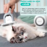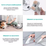 Професионалният комплект за домашни любимци има удобен контейнер, в който се събират всички досадни косми, алергени, прах, акари и други отпадъци. Той има няколко приставки: