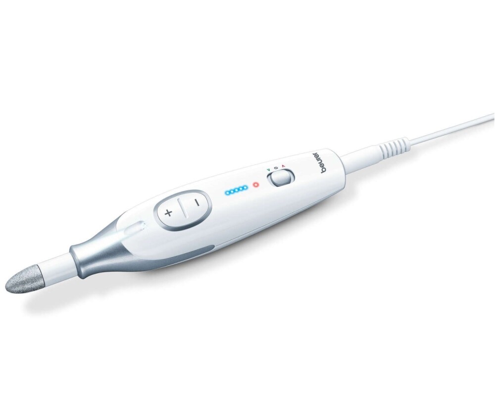 Чрез този уред на Beurer за маникюр и педикюр вашите нокти винаги ще бъдат в блестящ вид. Този уред има ярка LED светлина и ергономичен дизайн, който предотвратява изпускане по време на употреба. Скоростта на въртене и силата на работа се регулират. В комплекта са включени: 7 броя висококачествени приставки от сапфир и филц; предпазна капачка за частици от нокти и кожа; 1 брой адаптер; 1 брой чантичка за съхранение. Характеристики: "Magic" LED дисплей – появява се само по време на работа; непрекъснато регулируемо въртене по посока на часовниковата стрелка/ обратно на часовниковата стрелка; вкл. 7 висококачествени приставки; ергономичен дизайн, който предотвратява изплъзването по време на работа; LED светлина; приставки, подходящи за диабетици; вкл. защитна капачка за прах от нокти; работи на ток; вкл. калъф за съхранение.