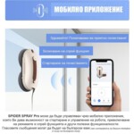 Иновативният робот за почистване на прозорци Spider Spray Pro разполага с интелигентна навигационна система и ефективни сензори за разпознаване на рамката на прозореца. Чрез мощния си вакуум и качествени компоненти уредът може да извършва сухо и влажно почистване на всякакви твърди и гладки повърхности (с рамки). В окомплектовката са включени и таблетки за почистване на стъкла, които се разтварят във вода и осигуряват ефективни резултати при почистване.
