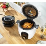 С капака Cook4me Extra Crisp добавете хрупкав, златист завършек на ястията си! Разнообразие от специални рецепти Extra Crisp, както и комбинирани рецепти Cook4me & Extra Crisp са на една ръка разстояние в приложението Cook4me. Насладете се на вкусни ястия, които са нежни отвътре и хрупкави отвън, с малко или без мазнина. Просто го включете и инсталирайте върху вашия Cook4me — а Extra Crisp Lid ще направи останалото! С интуитивен цифров интерфейс с четири автоматични програми, той ви позволява бързо да печете, гриловате, пържите с горещ въздух и приготвяте десерти без нужда от предварително загряване. Всичко това допълнено с прецизен контрол на температурата, удобен таймер с автоматично изключване и ръчен режим, който ви позволява да развихрите кулинарното си творчество!