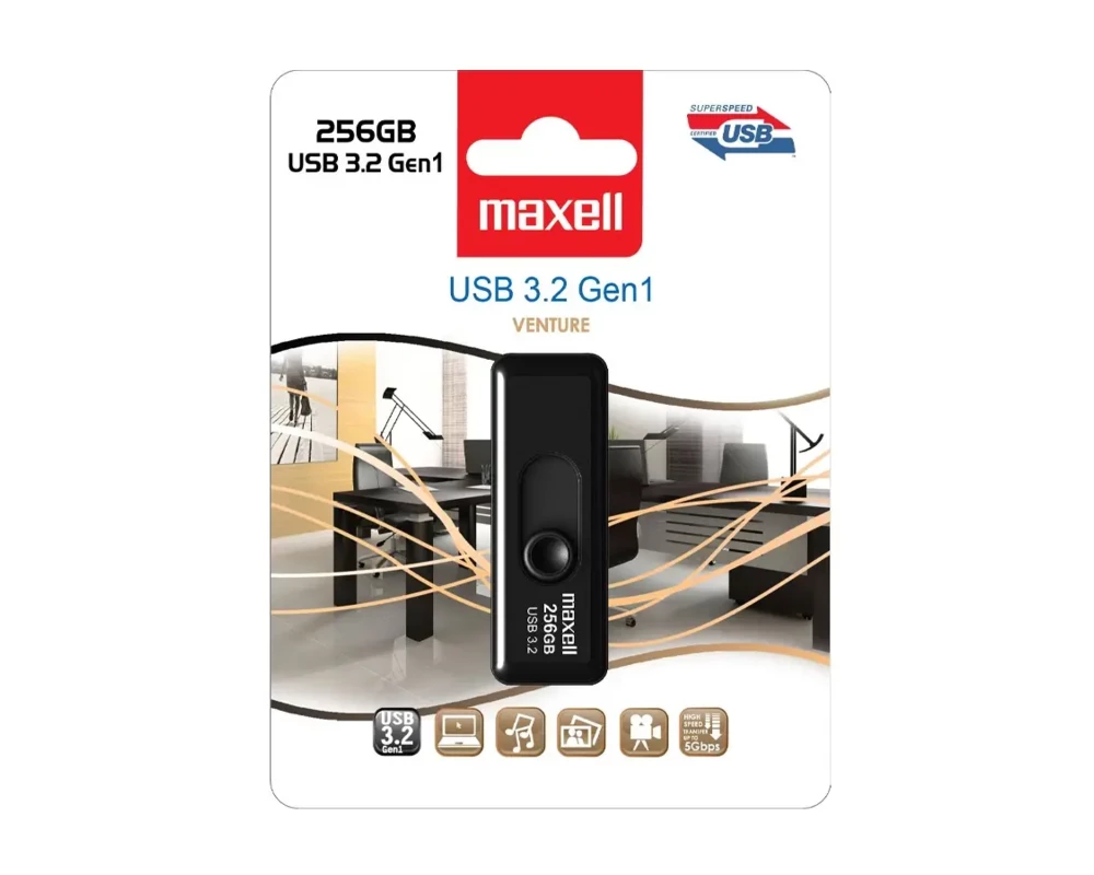 Флаш памет Флаш памет MAXELL VENTURE, 256GB USB 3.2 black ML-USB-256GB-BLACK