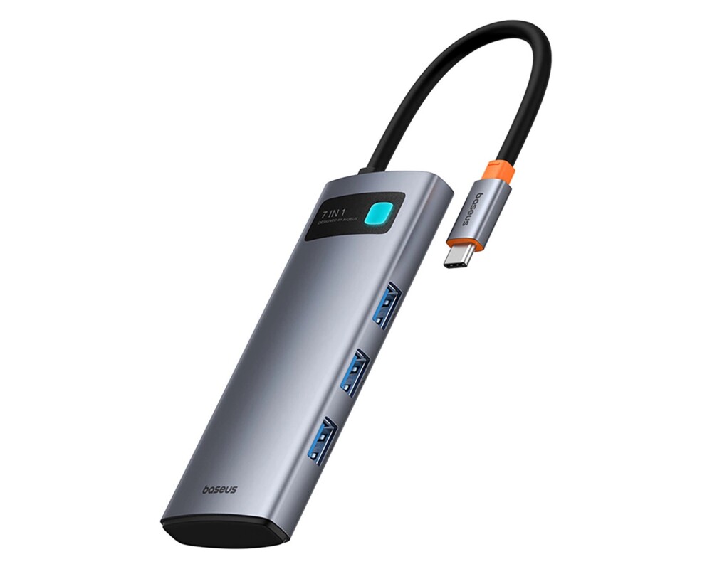 - Baseus Metal Gleam B00030708811-01 7-в-1 USB-C (HDMI 4K@60Hz / 3×USB 3.0 / USB-C PD 100W / SD / microSD) - сив (ID: 855370)