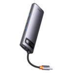 Мултифункционален хъб Baseus Metal Gleam Series 8в1 USB-C към 3x USB 3.0 + 2x HDMI + USB-C PD + microSD/SD WKWG050113 - сив