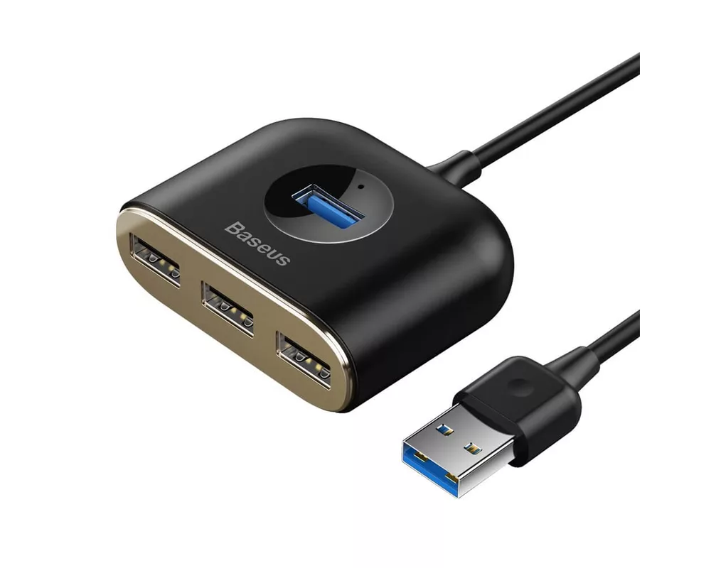 - Baseus Square round 4 в 1 с 3х USB 2.0, 1х USB 3.0 порта, черен (ID: 467836)
