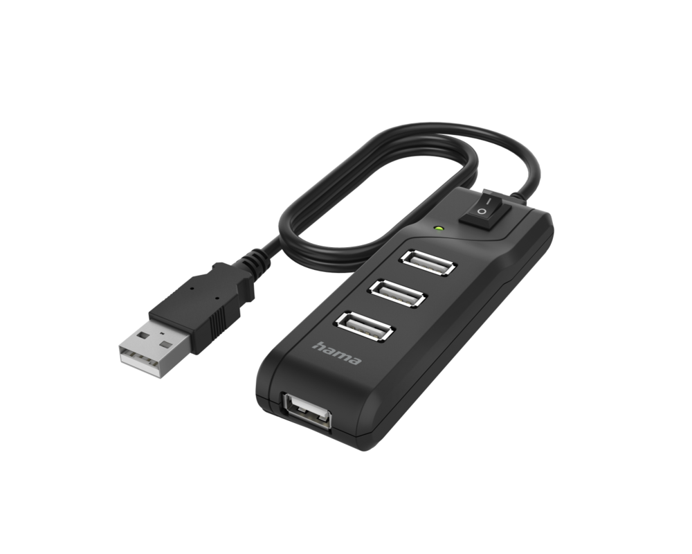 USB хъб HAMA, С бутон вкл./изкл., USB 2.0, 1:4, 480 Mbit/s, черен HAMA-200118