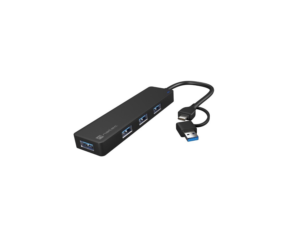 - Natec Hub Mayfly USB-C 3.0 4 Port + USB-A Adapter Black (ID: 695641)