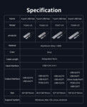 USB-A 2.0 x 4 USB-A 3.0 x 1 USB-C 2.0 x 2; Input Interface: USB-C/A Dual; Material: Allumium Alloy Plastic; Cable: 0.17m Length 2-in-1 Cable; Supported System: Windows Mac OS Linux Android |