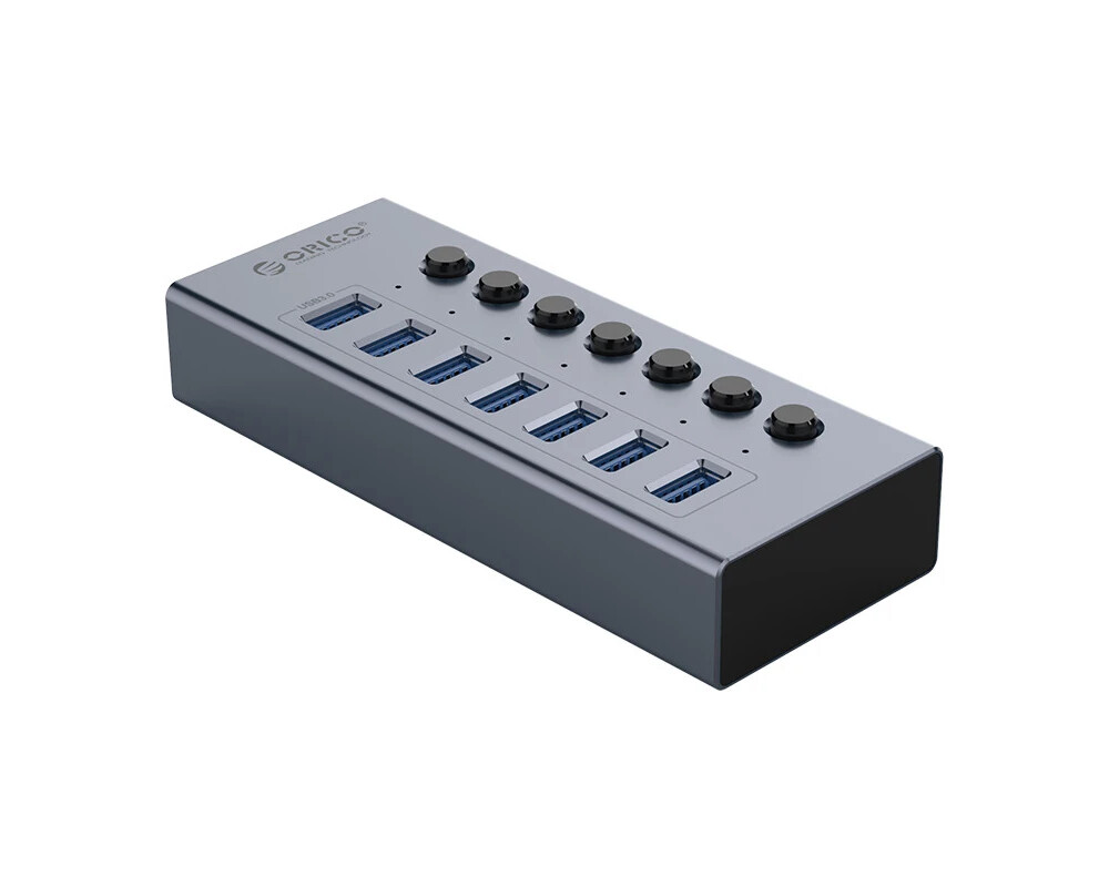 USB хъб Orico USB3.0 HUB 7 port with Power Adapter BT2U3-7AB-EU-GY-BP