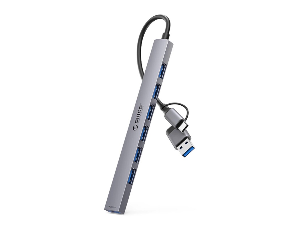 - Orico YSA2-U3 USB-A/USB-C Hub 1x USB-A 3.0 + 6x USB-A 2.0 - Сив (ID: 866074)