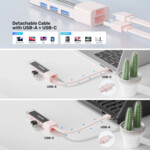 | Други характеристики | Detachable cable with USB-C/A, supports upstream by both USB-A and USB-C; 4 USB-A 5Gbps ports; Coated with Piano High Gloss Finish, less susceptible to permanent stains and scratch marks; Backward compatible with USB 2.0/ 1.0 devices; LED indicator |